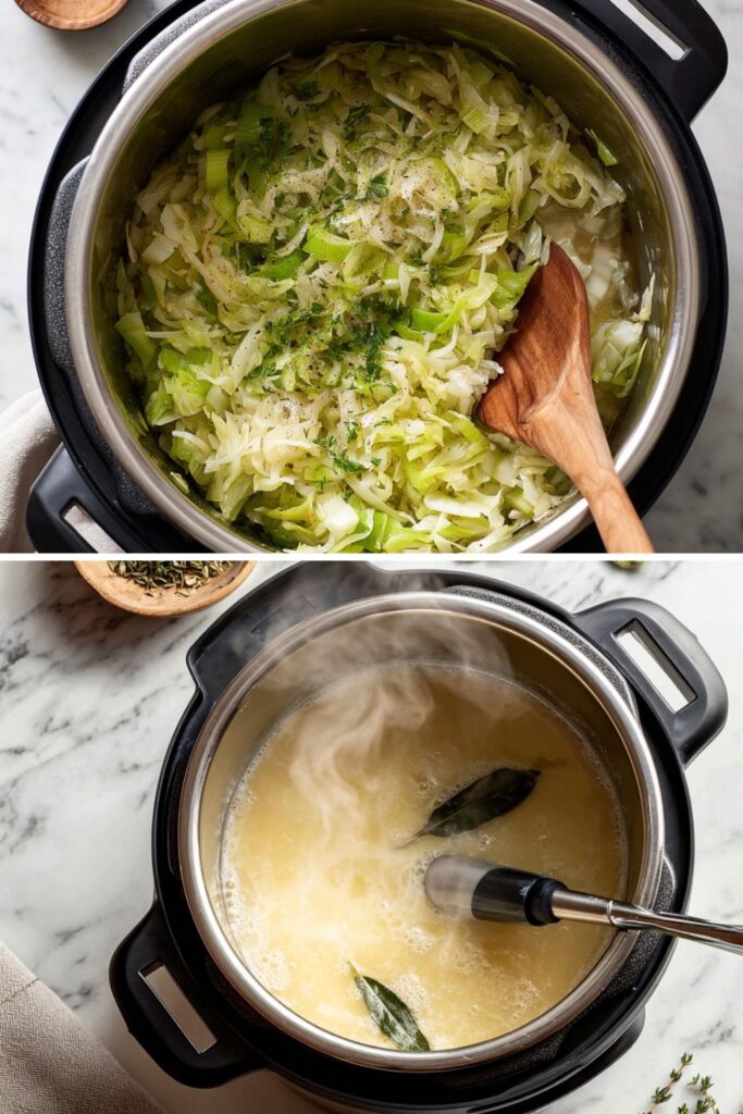 - Sauté the Aromatics: Set a 6- to 8-quart Instant Pot to the “Sauté” function on high. Add the butter and let it melt. Add the sliced leeks, chopped celery, salt, and pepper. Cook, stirring frequently, until the vegetables are tender, which should take about 4 to 6 minutes. Stir in the chopped garlic and cook for 1 more minute until fragrant.
